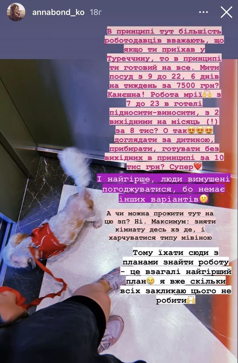 Поиск работы среди переселенцев за границей – это актуальный вопрос. В Турции вакансию с соответствующей зарплатой найти сложно. Украинка Анна Бондаренко призналась в Instagram, что в Стамбуле недооценивают переселенцев, предлагая минимальную зарплату, несмотря на напряженный график.