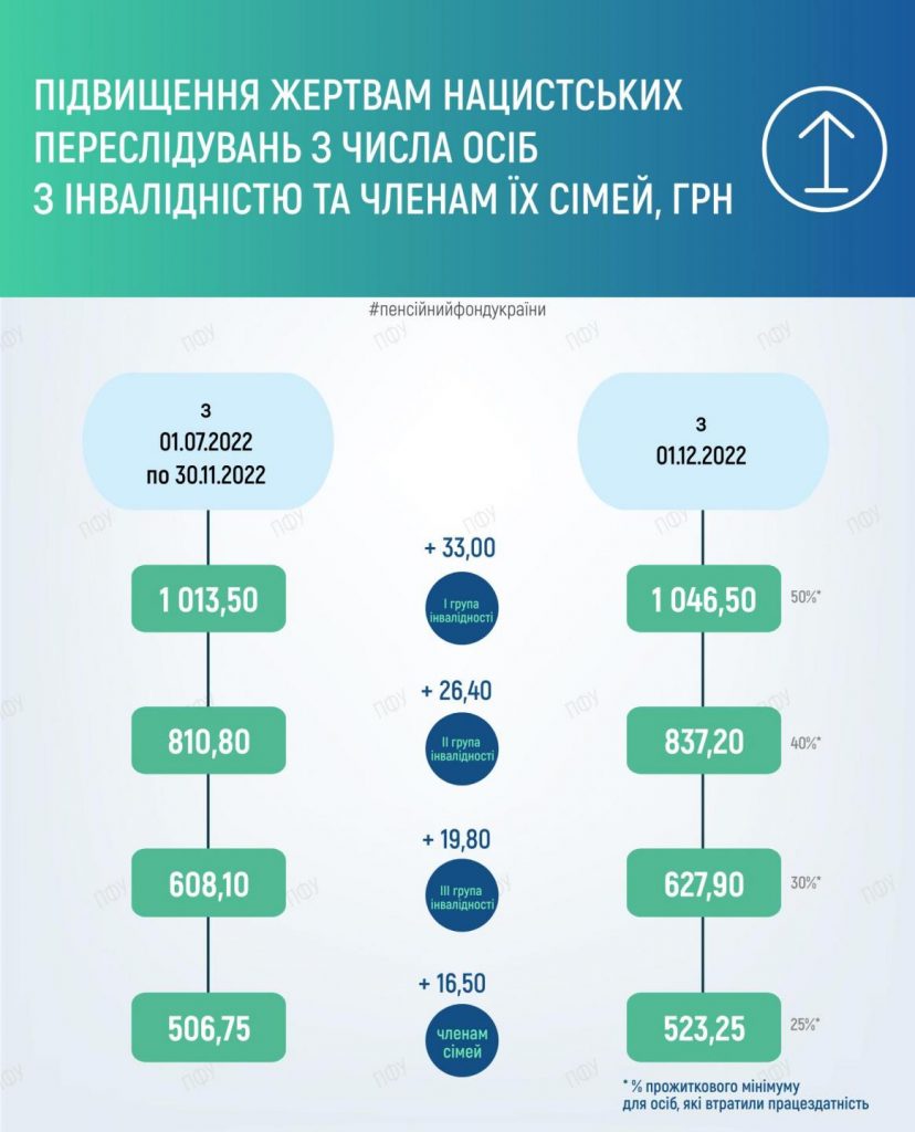 – підвищенням прожиткового мінімуму для осіб, які втратили працездатність, з 2 027 грн до 2 093 грн (стаття 7 Закону України «Про Державний бюджет України на 2022 рік»);